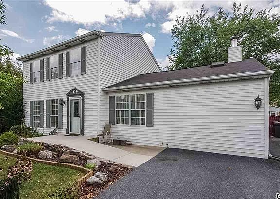 Conveniently located 2 story home on a quiet cul-de-sac with a fenced in yard. Garage has been converted to add more space to the family room with wood/coal stove with plenty of parking on the paved driveway. Shed included to provide extra storage. New granite counters with tile back splash and deck off of the dining area provides outdoor living space. Wood pocket doors separates living and dining rooms. Bonus room off the family room has electric fireplace and 2 ceiling fans for year round comfort.
