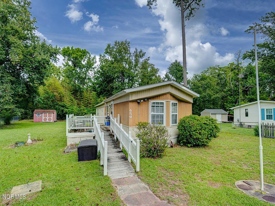 Single wide just minutes away from the ICWW, and close to nearby shopping. Home has a large family room attached to a eat-in kitchen, two bedrooms and two baths are all good size making this a very comfortable house to live in. In the backyard there is a wired workshop and a separate shed for yard equipment. Priced to sell, this home is in a great location! Seller will consider lease option. Seller plans to sell property in its as is condition.