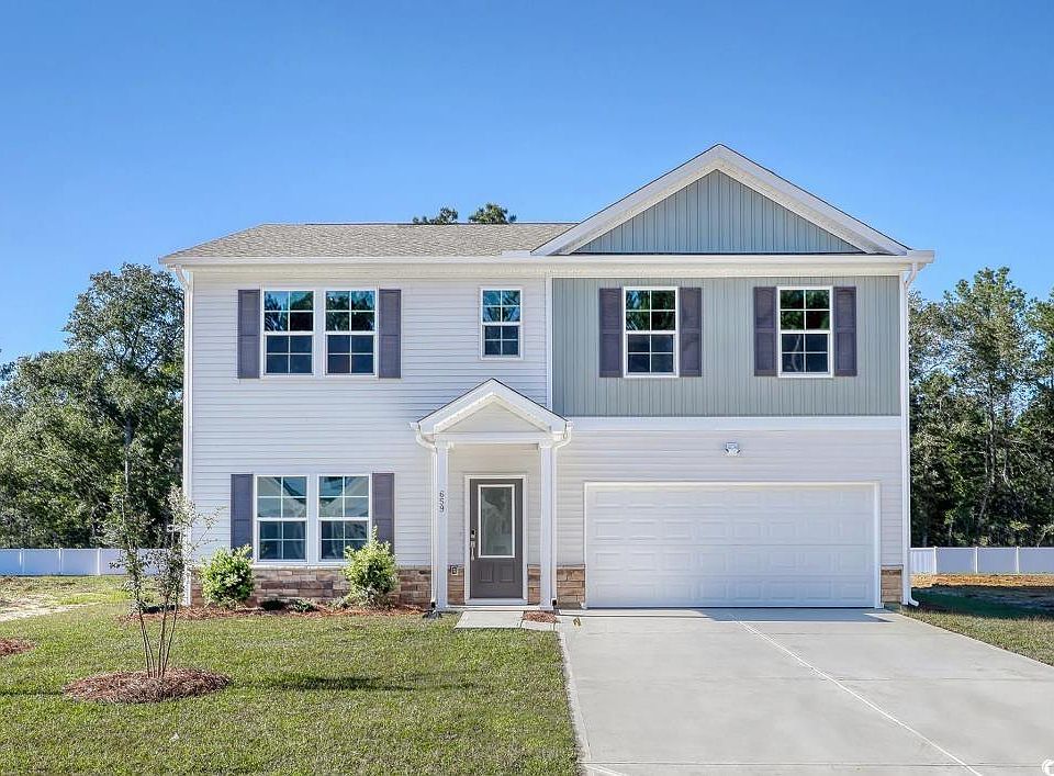This two-story home features 4 generous bedrooms and 3 full baths PLUS a large loft. There is a guest suite and full bath downstairs. The kitchen is equipped with white cabinets, upgraded white quartz countertops and Frigidaire stainless steel appliances, including a gas range. Luxury vinyl plank flooring extends throughout all of the main living areas on first floor. Upstairs, the primary bedroom boasts two walk-in closets, a huge primary bathroom with raised vanity, dual sinks, quartz countertops, and a linen closet. The upper level also includes two more bedrooms and another full bath. All of the bathrooms have LVP flooring and white quartz countertops. Nestled in a 'country quaint' community with only 90 homesites, this home offers convenience to all that the Myrtle Beach area has to offer.