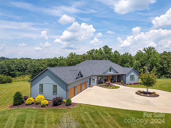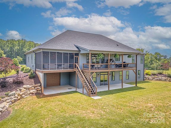 This beautiful custom-built home built in 2020 is a masterpiece of luxury. Sitting on private 8.05 acres, with no HOA or restrictions. The builder paid so much attention to detail. Norman plantation shutters throughout the home create a bright airy feeling. The open-concept great room includes vaulted ceilings and a cozy fireplace. The gourmet kitchen has custom cabinetry, a double oven, a gas range, and a large island. The gorgeous dining area is perfect for entertaining. The primary bedroom with beautiful trayed ceilings has an unbelievable walk-in closet and an ensuite with a large soaking tub, a shower, and a double vanity. There are also two bedrooms, a full bath, a half bath, and an office area on the main level. The lower level has a den/rec room, bonus room, full bath, kitchenette, garage/workshop, & multiple storage areas. The outdoor space is impressive with a covered porch, a screened porch, and a large porch across the front. Minutes from quaint downtown and 74/221 Highway.