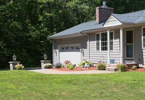 Looking for a meticulously cared for home with one-level living and a great backyard? This 3BR ranch on 2+ acres will impress you with its pretty landscaping and updates including: Interlock aluminum roof (with lifetime warranty), remodeled kitchen & basement, HW floors, pellet stove, septic system (2006), windows & doors (2012) + more! Sit at your breakfast bar or your pretty 4-season room with access to oversized deck and large backyard. Bonus room off master perfect for "dressing room" or nursery. Screen house and shed included plus this lovely home is wired for a generator. Come take a look!