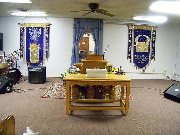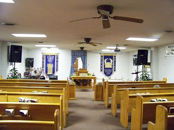 Great church space For Sale. 1900sf includes a foyer, a sanctuary, 2 restrooms including a ladies lounge, 3 Offices, Storage, Cafeteria & Galley Kitchen. Equipped with Pews, Tables, Chairs & Equipped Kitchen. Property would also serve well as a Day Care. Listing also includes 2 additional lots which are included in lot size making approximately a half an acre.