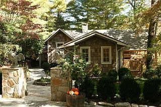 A real charmer in Highlands Falls Country Club. The quintessential mountain cottage, with two stone columns topped with owl sculptures form the entry to an English garden path to the front door. The large foyer with barnwood accents, custom front door and window grille creates an immediate sense that you have entered a special home. The open kitchen has custom cabinetry, stainless steel Viking appliances and an antique island. The two sided stone fireplace creates a feeling of warmth in the living room, the dining room and the kitchen. A wall of windows opens onto a spacious deck with a second stone fireplace. The master suite is extra large with a gracious bath featuring an air tub and tiled steam shower. Two additional bedroom suites give guests their own privacy. A carport with golf cart storage complete this amazing renovation. Offered fully furnished and ready to move in.
