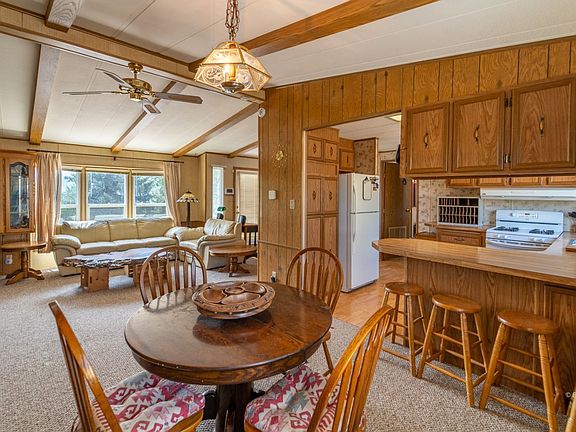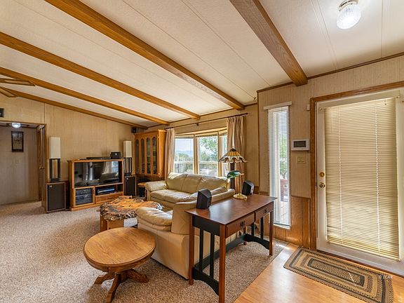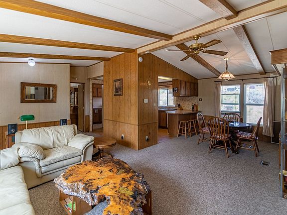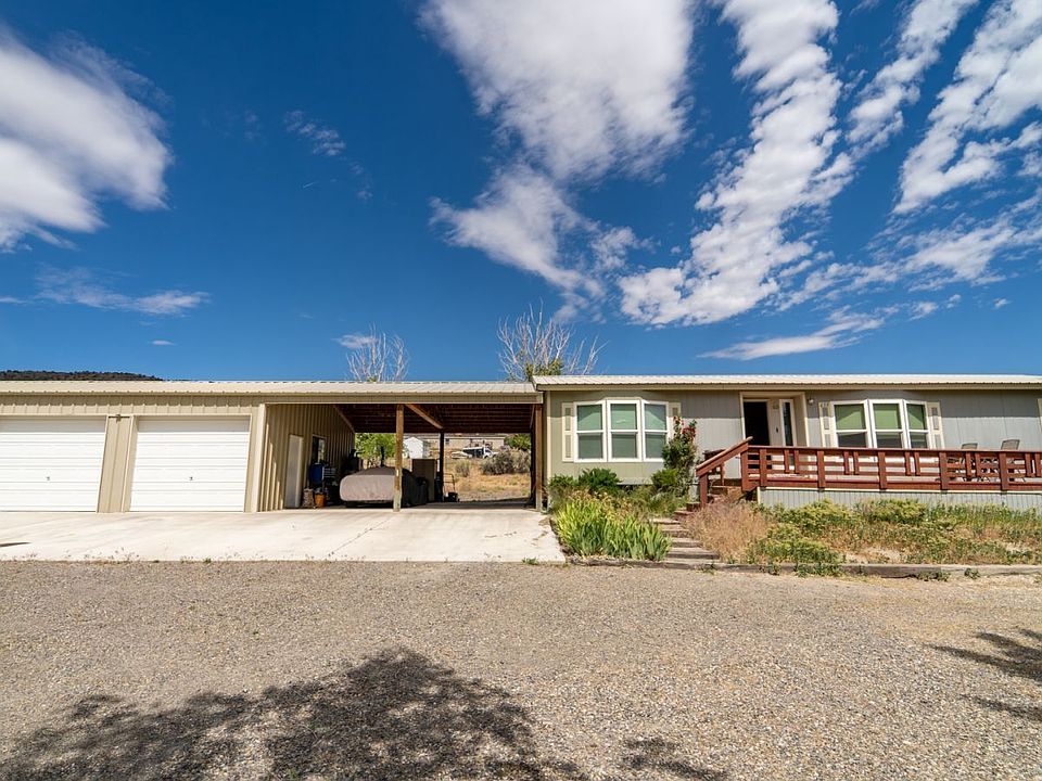 Come take a look at this home... It is ready for the new owners to take of it.. 3 bedroom 2 bath non-perm mobile with an attached 2 space carport (breeze way) and a 3 car garage. U shaped drive with lots of mature trees. Loads of parking for all the toys. Split bedroom floor plan, built in chain hutch, laundry sink, mirrored bedroom closet doors, main bath has soaker tub and shower stall, bay window in main bedroom and living room. Front deck has the most beautiful views of the Spring Creek and the Ruby Mountains...