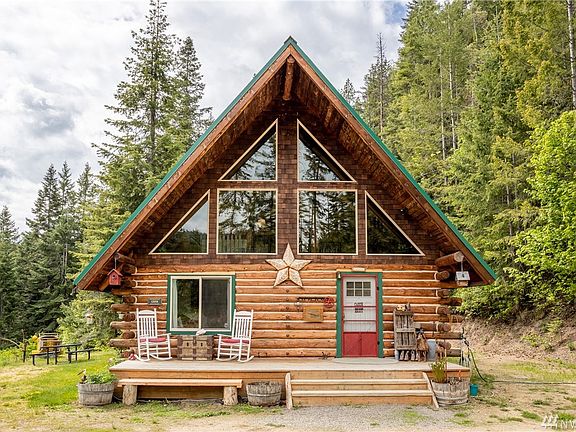 Authentic cabin built on a wooded 20.5-acre lot! Enjoy easy maintenance, loft and vaulted ceilings, plenty of natural light coming in through large windows, privacy from the large lot, and covered parking. Just 15 minutes from downtown Leavenworth. There is a framed-in ADDITIONAL DWELLING UNIT with all of the necessary materials, materials to build an on-site GARAGE, and a STABLE with 3 horse runs. There is also an opportunity for subdivision, making this an incredible home AND investment.