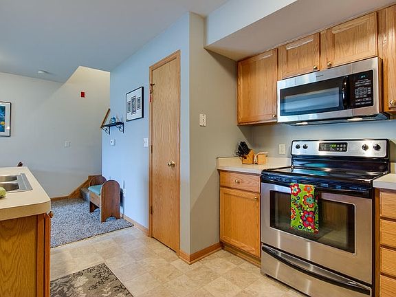 Townhouse style condo with attached garage! Gas fireplace with stone surround, patio doors out to private patio and open concept kitchen create wonderful living spaces. Kitchen is upgraded with soft close hardware and granite counter tops! Upstairs bedrooms both have walk in closets, one with additional storage closet! Dual entry bath off Master Bedroom with whirlpool tub and lots of storage. Separate laundry room located upstairs as well. All appliances included! Great location and minutes from everything! So much to love.