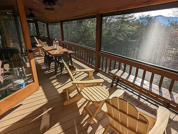 Discover the ultimate mountain retreat in this fully furnished log home nestled w/in the sought-after Goose Island Hideaway. Perfectly situated between Ellijay & Blue Ridge. With all paved road access, a circular drive, 2-car garage, & full house generator, you'll experience unmatched ease from the moment you arrive. Boasting 3 bedrooms and 3 baths, this charming abode features a cozy wood-burning fireplace, creating the perfect ambiance for relaxation. The kitchen showcases elegant granite counters, upgraded appliances, & plenty of countertop space. Prepare to be captivated by the year-round, long-range mountain views of Rich Mountain that stretch as far as the eye can see. Enjoy the fresh mtn air from the comfort of the screened-in porches or the spacious deck complete w/a fire pit. The lower level offers a versatile space that can be used as a den, office, or game room, adding to the home's functional appeal. Indulge in the relaxation provided by the hot tub, ideally situated on the screened porch & offering mountain vistas. With a covered bridge entrance & deeded river access, you'll find the perfect balance between natural beauty & modern amenities. This home presents a fantastic opportunity for short-term rental income, making it an ideal investment. With every detail thoughtfully considered you can seize the chance to own this impeccable mountain oasis. Your dream of owning a furnished log home with stunning mtn views is now w/in reach!