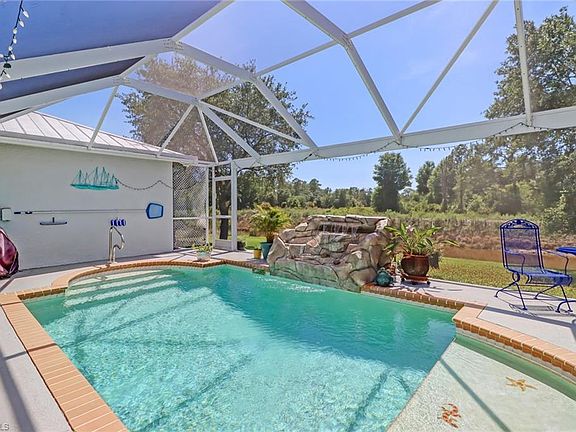 Updated pool home in Buckingham Park overlooking freshwater canal and into a Lee County nature preserve. Inside the home are pocketing sliding glass doors leading to the pool and large under truss lanai, making this the perfect place to entertain family and friends. The custom salt water pool has a large sun shelf and water feature AND a picture frame pool cage looking over the canal into the nature preserve --NOBODY WILL EVER BUILD BEHIND YOU!. The guest bath also doubles as a pool bath, helping keep your house and floors clean. The recently updated kitchen has white shaker style cabinets and level 4 quartz counters. The center of the home is the great room with it's functional fireplace, custom mantel with cable tv inputs and soaring ceilings. Custom lighting & window treatments throughout the home. All windows were upgraded to impact in 2018. The metal roof and 3 nails in the roof trusses keeps home owner's insurance affordable (no flood zone!). Very well-maintained home with 5 month old 17 seer variable a/c system w/ smart thermostat and R8 ducts, new well pump, new walk in master shower. The yard has mature tropical landscaping, and concrete curbing for a fresh look.