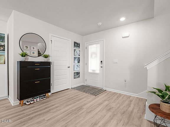 Here's your opportunity to own the ''Aisle floor-plan'' in the popular Liberty neighborhood with amazing amenities. This floor plan is currently no longer being built and the ONLY resale on the market. When you enter you immediately notice the bright entryway afforded by the prairie door. This home offers 4 bedroom, 2.5 bath with an open floorplan with all bedrooms upstairs. The homeowners have added some beautiful udgrades to include - fence, tripled the back patio size, termite bond, board and batten powder bath with new vanity and mirror, shelving system in several closets, added a backpack area near garage, garage storage system, all faucets upgraded to matte black and hardware added to all cabinets and drawers, and added shelving to the pantry. The primary bathroom has a dual vanity, large shower, and a huge closet. The kitchen offers an island with space for bar seating. Conveniently located in beautiful Panama City off Star Avenue near 231. Just 25 minutes from Tyndall AFB, hospitals, and less than 15 minutes to shopping, restaurants, and grocery stores. Amenities included with this beauty are - community center with full gym, wellness room, poker room, resort style pool, splash pad, and outdoor grilling kitchen with seating. A second pool and multi use courts (pickleball) being built now!