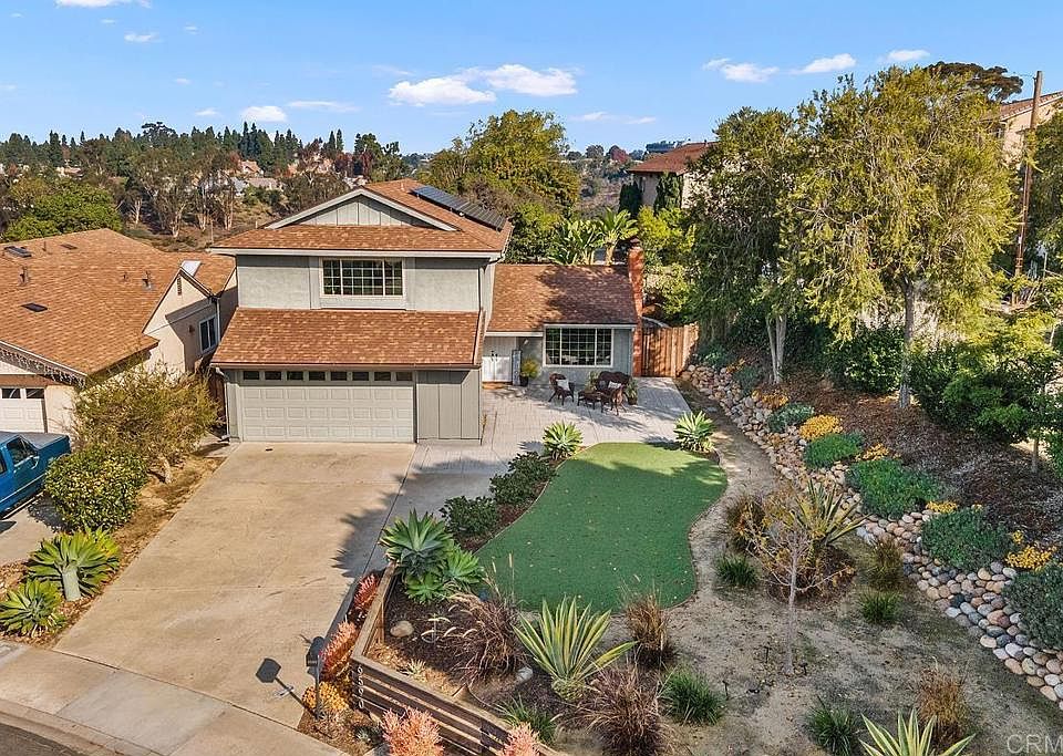 Welcome to this fantastic Canyon Home in San Diego! Tucked away on a serene and peaceful street, this beautiful residence enjoys the company of long-standing neighbors, creating a welcoming and established community atmosphere. Conveniently located just 14 minutes from Mission Bay Park and a mere 20 minutes from the ocean, this home is an ideal choice for those seeking a perfect starter home or an entertainer's haven. The property boasts an impressive front and back yard space with meticulously maintained, low-maintenance landscaping, mature fruit trees, turf, stamped concrete, and enchanting cafe lights. Featuring (4 BR) 3 full bedrooms and an additional smaller room perfect for an office or child's room, this home offers flexibility and comfort for various needs. The Master Suite is a retreat within itself, a spacious walk-in closet, and a generously sized shower. The well-thought-out floorplan includes an expansive living and dining room with a fireplace, complemented by a large family room adjacent to the kitchen area. Upgraded and move-in ready, this residence features dual-paned windows, a 2015 roof with paid solar, a 2022 central heat and A/C system, a 2015 security system, and a 2019 tankless water heater and gutters. Recent updates also include a water softener/house filter, landscaping and fencing improvements, blinds, ice-maker refrigerator, plumbing upgrades, and more. With a large driveway and a 2-car garage equipped with storage, this home is not only a must-see but also an incredible value. Enjoy the convenience of being close to shopping, restaurants, and major freeways (5, 805, and 163) while reveling in the tranquility of your surroundings. Welcome home! VA buyers, this property qualifies for you too! No HOA or Mello Roos Fees. (Fruit trees - Lemon, Lime, Avocado, Fig, Loquat & Pomegranate)