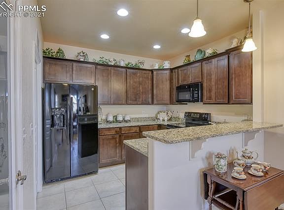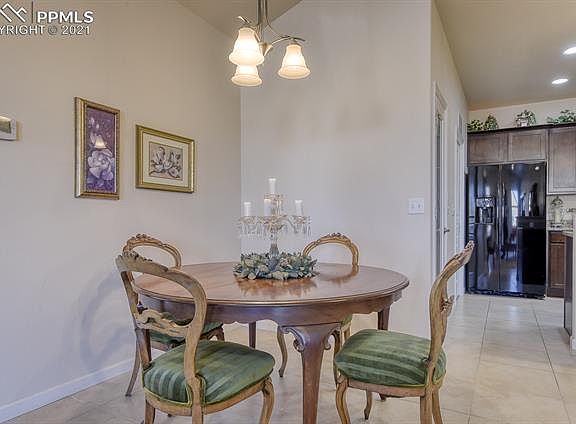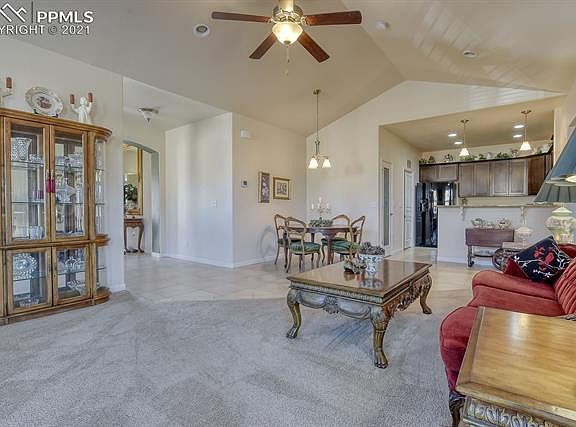 Maintenance free former model ranch style home in the area of Indigo Ranch that features 3 bedrooms, 3 baths, a main level office and Pikes Peak views. This home has had a smoker with a cat so if that bothers you we don't want to waste your time! If you don't mind putting in a little work to have a great home this is an excellent opportunity! Entry with ceramic tile flooring that leads into the vaulted great room with gas fireplace and a walk-out to the concrete patio. The dining area is off the great room and opens into the gourmet kitchen with granite countertops, Cherry cabinets, and an eating bar with pendant lighting, a nice size pantry plus a full array of appliances. The vault master suit has an attached bath with double sinks, a walk-in tile shower and a walk-in closet. Completing the main level is an office, the laundry room and a powder room. The finished lower level features a very spacious family room with wet bar, a full bath and two additional bedrooms with one featuring a large walk-in closet. Great location, Pikes Peak views and maintenance free living that includes exterior maintenance and insurance, all landscaping plus snow & trash removal.
