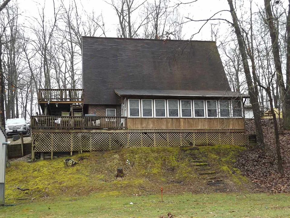 Country setting, very nice home, and outbuildings. It is all here. This A-frame home sits on 3 acres just outside of Holland. Inside it offers a large, eat in kitchen, full bathroom, laundry room and living room on the main floor. On the second floor, you have the master bedroom, full bathroom and a large sitting area or rec room. Climbing up the circle stairs to the upper floor, you will find 2 more bedrooms available. Outside there are two garages, one of them is a 32'x24', heated and the other one is 42'x20', heated. Also, there is a 12'x12' shop and an 8'x12' shed. Plenty of room for all of your needs.