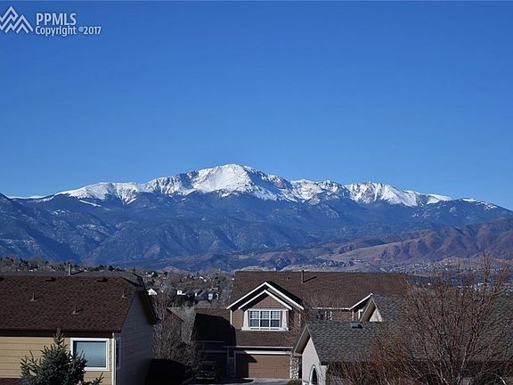 Absolutely stunning Pikes Peak and front range views off the back of this lovely home (Rear faces west). One of the best view lots in the neighborhood. 4 Bedrooms, 4 baths (No waiting!!), 3 car garage, stucco exterior, central air, lots of beautiful hardwood flooring, walk-out lot, street ends in a culdesac (low traffic), high ceilings in living room, awesome loft (perfect for office, gaming or play area), tremendous deck, expansive open finished area in the basement, fenced rear yard. Auto-sprinkler system. Fully landscaped. Front of house faces East - perfect for snow melt. Ready for quick move-in.