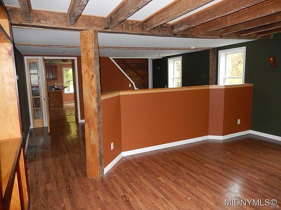 What a setting for this century old farm house. Set on a private 5 acre lot this home has had some very nice improvements. Kitchen with breakfast counter & eat-in area. Living room & dining have open area with laundry room & full bath nearby. Bedrooms on 2nd floor with 2nd full bath. Spacious garage with enough area to park multiple vehicles and still fit a workshop. This piece of real estate offers you piece of mind. come check it out.