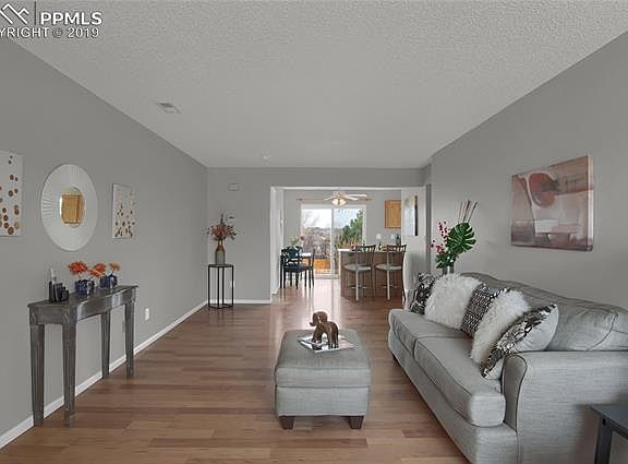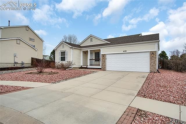 Super cute rancher with three bedrooms, two baths, a two-car garage, fully fenced yard, fresh interior paint, new flooring and an amazing open-concept floor plan that makes the space feel large! Adjacent to the kitchen is a great breakfast bar! The kitchen has plenty of storage, boasts stainless steel refrigerator, ss range oven, ss dishwasher AND a proper pantry to boot! Upgraded vinyl window throughout make this modern space super efficient! Even the front porch has been updated with composite decking, fresh paint and -- at no extra charge! -- a stunning Pikes Peak view! Maybe the best part of this property?? LOCATION!!! You can WALK to the grocery store, multiple local dining options, and a host of other amenities along the Powers corridor! With excellent access to the North/South Powers and Marksheffel corridors and just two minutes from the East/West Woodmen corridor, you can get anywhere in town fast! It's an easy (and quick) walk to the large neighborhood park! This one is sparkly clean, super move-in ready, and won't last long!