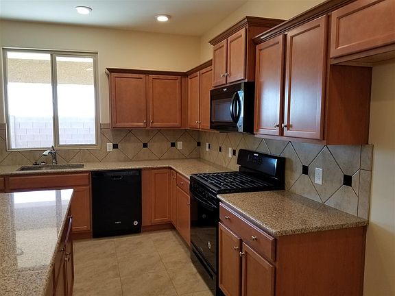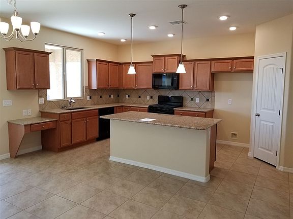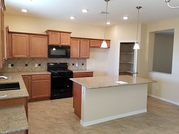 Beautiful 4 bedroom, 2 bath, 2 car garage in Araby Crossing.Granite kitchen counter tops, kitchen backsplash, 2 roll out on each side of stove in cabinets, pendant lighting over island in kitchen. Tile flooring throughout except bedrooms. Estimated monthly power bill is $76.75. Solar & Energy Star Certified. Picture is a C elevation, color not exact.
