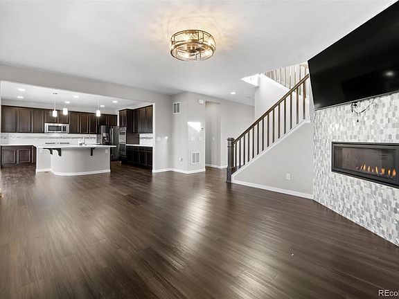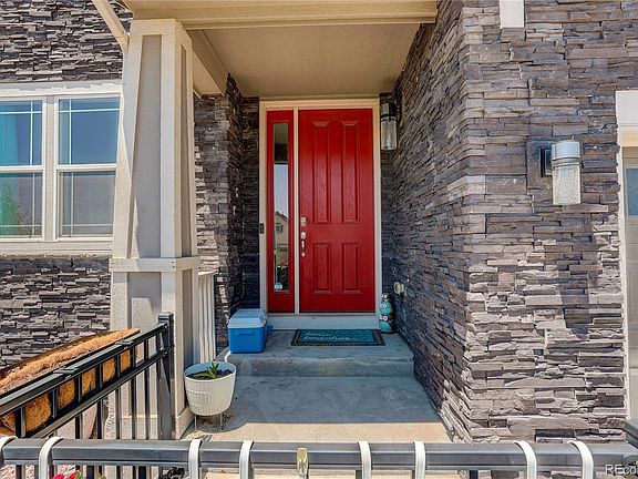 VA Assumable at 4.25%!! Welcome to your new home with Front Range Mountain views, an east/west facing home, with a driveway that gets full sun during winter. You will love the easy access to the Southlands Mall and E-470. Relax in the hot tub under the large covered back porch while you admire the mountains or just enjoy the July fireworks from your hilltop view. This home features quartz countertops, a massive kitchen island, more kitchen cabinets that you can imagine, durable plank flooring and noise reduction windows. The home has all four bedrooms on the top floor, along with a large loft space and laundry room. You will love the dual HVAC on the main and upper floors, say goodbye to temperature differences between the levels. The large backyard is fully rock-scaped for low maintenance and has a large, turfed area for extra outdoor entertaining space. The Realtor selling this home is also one of the owners.