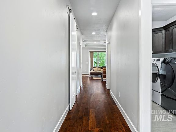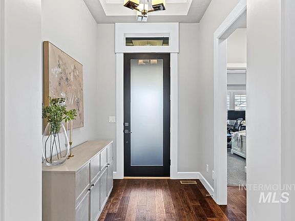 Discover your dream home nestled at the base of Boise’s foothills in the highly desirable Millwell Place. Step inside this meticulously maintained & thoughtfully designed single level, 3 bed + office, 2.5 bathroom, split-bedroom floor plan that centers around an inviting main living area, featuring stunning coffered ceilings, warm hardwood floors & cozy fireplace. The gourmet kitchen is a chef’s paradise, equipped w/custom cabinetry, stainless steel appliances, quartz countertops & a spacious walk-in pantry. Retreat to the primary suite complete w/luxurious full-tiled shower, a relaxing soaker tub, dual vanities & generous walk-in closet. Working from home has never felt more elevated in the dedicated home office trimmed w/wainscoting. Store your toys in the spacious tandem 3 car garage lined w/built-in storage. Minutes from downtown, the Ridge to Rivers trail system, Pierce Park Greens, Boise Whitewater Park, & the Greenbelt, this low-maintenance living home is perfectly positioned for an active lifestyle.