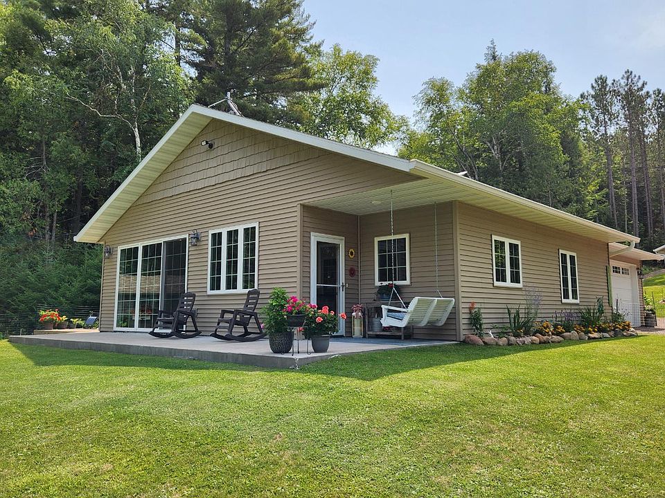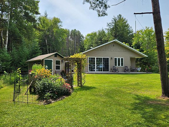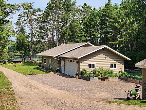 Looking for private & tucked away? This Newer Quality-built beautiful ranch home on PRIVATE 200acre Bear Lake in the heart of the Chequamegon Forest comes fully furnished & boasts: 9'ceilings, engineered hardwood floors, 2 BR's w/walk-in closets, laundry Rm (w/pantry & partial bath), zoned heated floors, decks & patios, fireplace, DR/Kit rock island, 12'w LR patio doors & much more! Adorable Guest Bunkhouse, heated 2car+ att' garage, a very nice huge detached garage w/basement grade foundation, finished office & bathroom, zoned heated floors, 220 outlets, sinks & cookstove and another det garage w/lean-to. Beautifully landscaped w/many flowers, berry bushes, raised garden beds, scenic pond & more. Other features: security systems, cell tower, & generator ready. Comes with home furnishings, decor, appliances, dock, pontoon, pontoon lift & trailer. Grab the pontoon & fish the many species on this peaceful private lake (no public access) AND up/down the Chippewa River! Rare opportunity!