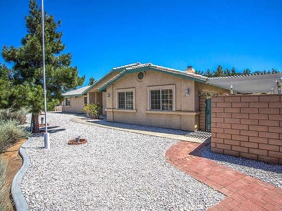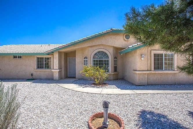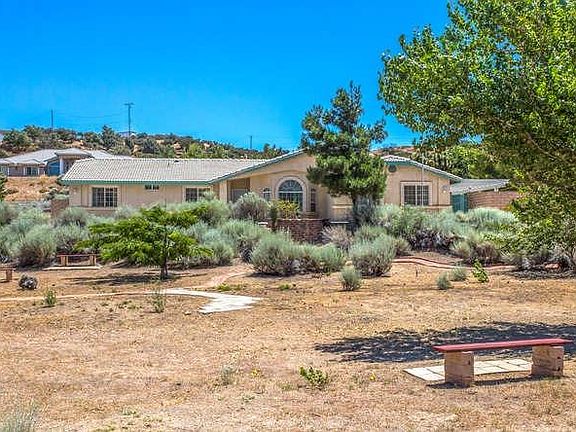 This comfortable turn key home only 3 minutes to I-15 freeway, yet secluded on 2+ acres. Enter the 3 rail vinyl fenced property on the 415 foot drive way with alert buzzer. More than 45 trees and bushes enhance the natural flora and a detached guest room building. The guest room building features a porch and is finished inside with sheet rock, paint, electric and carpet. The gated block wall off the primary bedroom creates a secluded private patio area. Inside the large kitchen with pantry opens to spacious family room with cozy fireplace. The spacious formal living room provides a quiet retreat area. The interior sports new paint and bedroom carpet as well as ceiling fans in all the bedrooms and family room and three 11'x7' oak book shelf units to hold your treasures. The adjoining sun room boosts livable square footage total to 2122.(Assessor shows 1821). Outside the sun room is a covered BBQ area with counters and cabinets. Fire sprinklers in the house and garage reduce insurance cost. Must see this beauty to fully appreciate all the amenities.