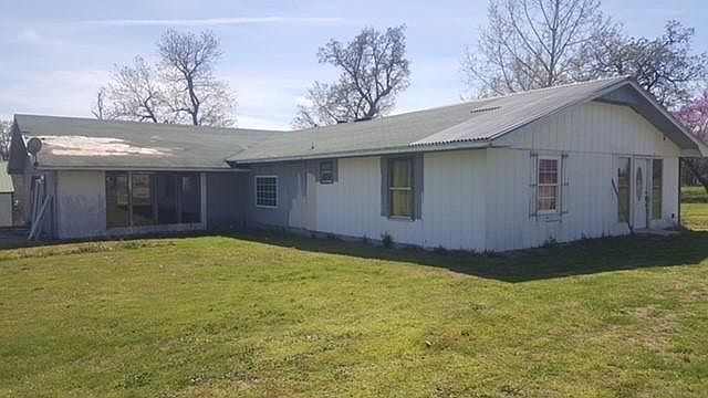 Beautiful country living location. Structure on 4000 sq ft concrete slab would make a great location for building! Creek access, pond, 40x50 shop. Home next to property is also listed for sale with an additional 3 acres. (6596 RT R). 60133997. Home is mostly tore down with 2 bedrooms standing with siding, not currently suitable for living. Home sits on 4,000 sq ft of concrete.