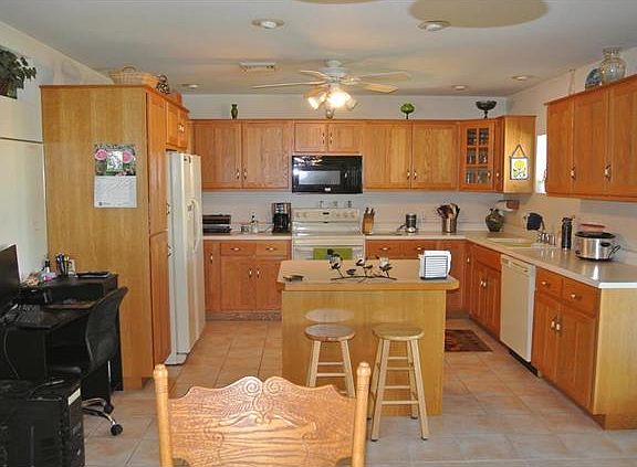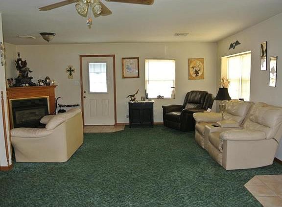 Built in 2001, this metal-sided ranch style home offers 1800 sq. ft. of living area. Seller has recently (July 2017) repainted the entire interior of the home. The open living area offers an enormous living room with a gas fireplace. The kitchen offers custom oak cabinetry, a center island, ceramic tile flooring and all appliances are included. An adjoining dining area has patio doors that look out onto neighboring farm ground. Or you can simply enjoy the view, rain or shine, from the covered patio. The main level laundry is spacious and has a large wash tub for soaking and scrubbing. The home offers 3 bedrooms and 2 full baths. The master bedroom offers a private bath and a large closet. Also included is a detached 3 car garage which also has an office and half bath. The manicured yard is nearly ?? of an acre and there is a portion of the backyard that is already fenced and ready for your four-legged friends. Just minutes from town, this home has so much to offer at a great price.