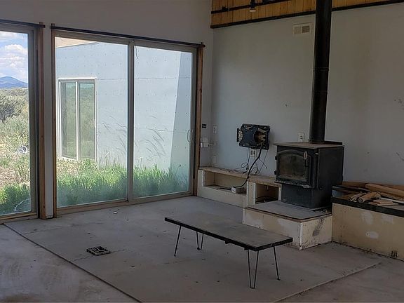 This unique off grid home is nestled in the cozy Sangre de Cristo Ranch, on a residential surveyed parcel. The home offers 1,872 sq ft on well, and private septic . Solar would need installed. The property is very private and offers garden beds and a quaint walk through sage brush to Ojito Creek which borders the south edge of the 5.176 Acres. The home has beautiful unique features such as custom wood and tile shower/sinks The kitchen offers stainless steel appliances. The living room offers wonderfully lit resides in the middle of the home. This is surrounded by glass windows opening breath taking views of Mt. Blanca and the surrounding Sangre de Cristo mountain range. Home is being sold as is, solar system was previously removed. The well is pumping 1gallon per minute, but likely needs new pump(permit#62952-F(97 ft deep).