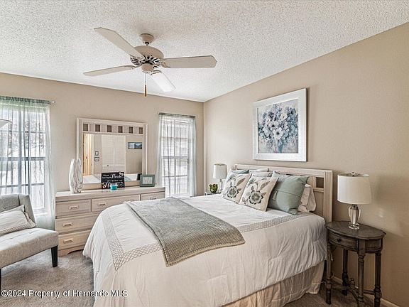MOTIVATED SELLERS. Welcome to your dream villa nestled in the exclusive 55+ Golf Course community of Timber Pines. This meticulously maintained two-bedroom, two-bathroom villa exudes comfort and luxury. As you step through the front door, you're greeted by a spacious living area, tastefully furnished with high-quality pieces that perfectly complement the villa's elegant ambiance. Natural light pours through large windows, casting a warm glow on the inviting interior. The well-appointed kitchen boasts modern appliances, ample counter space, and plenty of storage. Adjacent to the kitchen, the dining area offers a charming space to entertain guests or enjoy intimate dinners with loved ones. Retreat to the serene master suite with an ensuite bathroom and ample closet space. The second bedroom provides additional comfort and convenience, ideal for guests or as a versatile space to suit your needs. A tranquil enclosed lanai awaits, offering the perfect spot to sip your morning coffee or unwind with a glass of wine as you take in the picturesque views of the surrounding greenery. Beyond the villa, Timber Pines offers a resort lifestyle like no other. Residents enjoy access to several pools, restaurants, a theater, an activity club, a gym, and so much more, ensuring there's always something to do. Golf enthusiasts will appreciate the renowned golf course, perfect for honing their skills or enjoying a leisurely round with friends. These courses are fully maintained and always in immaculate condition; The Grand Pines is a par 72 professional-level course. 2&3 The Hills and The Lakes, 2 par 60 executive courses. A 4th 9-hole walking-only practice course. The villa comes fully furnished and all garden tools are included as well. Don't miss your chance to experience luxury living in this sought-after community. Schedule your showing today and make this villa your slice of paradise in Timber Pines.
