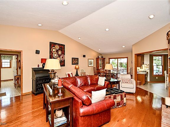 This custom built ranch was designed with comfort and connection in mind. Stepping into the heart of the home you'll find soaring ceilings and an open layout that is perfect for entertaining. The living room centers around a cozy fireplace that flows into the dining and kitchen areas. The layout is filled with natural light, a generous flow to the living spaces and quality finishes throughout. The bright and roomy eat-in kitchen leads to a back deck, perfect for hosting summer barbecues or enjoying peaceful evenings. Off the great room you'll find the generously sized primary suite, featuring a private ensuite bath for your own personal oasis. Two additional bedrooms offer comfort and flexibility, perfect for family, guests or a home office. The convenient first-floor laundry, a 2-car attached garage, partially finished basement and tons of additional storage make this home a gem!  All of this sits on a quiet cul de sac tucked into a friendly neighborhood that's just minutes from shopping, dining, and more. This amazing home has been lovingly cared for by the same owners for over 25 years, don't miss your chance to see it! Schedule your showing today!