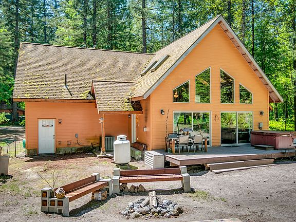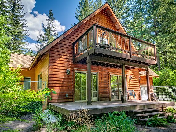 Chalet style home located on a secluded half-acre site. Great room layout with a sunny backyard, cozy fireplace, and 3 large bedrooms. Huge lofted family room upstairs. Rough plumbed for 2nd bath too. Relax in the hot tub on sunfilled back deck. 2 car garage. Great full time or vacation home close to hiking, mtn biking, & ski resorts. Walk to legal river access.