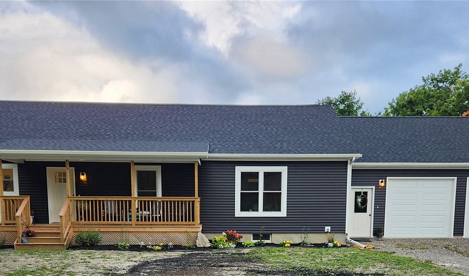 This is an incredible opportunity in the heart of the Finger Lakes / Southern Tier area of NY to own a new ranch style property on 10+ acres. Experience country living at its finest. A short drive to Naples, Bristol Mountain, Keuka Lake, Canandaigua Lake, and many wineries and breweries. Built and finished in summer of 2023, this home includes 3 bedrooms, 2 full baths, a large kitchen open to dining and living area, a large two car garage and outbuilding that could be used as an office or studio. The house features a charming front porch, modern style oversize windows and a steep pitched roof. An additional 13’ x 64’ out building offers plenty of space for storage or room for a workshop. Included appliances bought new in 2023 (washer, dryer, stove/oven, refrigerator and microwave). Select furniture is negotiable. French glass doors and large windows offer a picturesque view of the large secluded back yard. Quiet woods and your very own pond. The property offers ample space for privacy but is conveniently located near State Route 53 for easy access to the many offerings the area has. (1,008 sf was the former home. This newly-built home is 1,620 SF.)