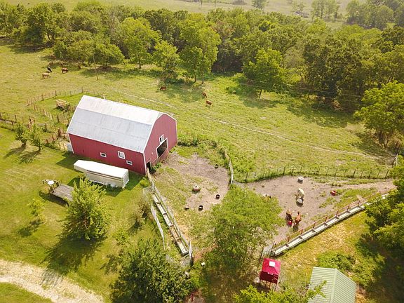 Bring the livestock, 145.5 acres m/l excellent fence and cross fenced for rotational grazing. Farmhouse circa 1880's, steel wrapped, metal roof, with major add on and recent updates. 4 BR, 1.5 BA, large country kitchen with new granite and back splash, floors, pantry, formal dining, office, large mud-room/main floor laundry, bay window in living room, master bedroom, 7 x 10 walk-in closet, walk-in shower, jacuzzi. covered front porch, deck, detached garage, workshop,other,outbuildings,incredible views, detached tornado shelter, seven ponds, some spring- fed, pasture, hay fields, steel wrapped barn w/loft, 5 bay steel structure, machine shed w/ concrete floor, two large hay barns, good working corrals, head chute, panels, hay in barns, commercial air compressor, three road frontages. More