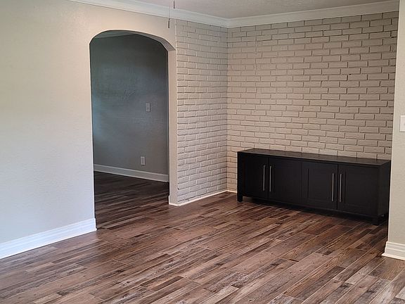 This beautifully updated ranch greets you with cobblestones and stone pavers at that entrance with a dramatic wrap around porch that has access to the living room and Master Bedroom. Hardwood flooring throughout with a feature brick wall in the great room for that Mid Century Modern vibe. Nice neutral colors. Kitchen has brand new Shaker Cabinets and an eat in Kitchen Table area. Oversized Mud Room/Laundry Room with exterior door. Bath has been updated with new lighting fixture and tile on floor and tub/shower area. Master is in its own wing and has direct access to large beautiful outdoor deck. Very pretty lot with mature shade trees. Oversized Workshop/Garage/Storage detached building on the property with Expansive Driveway!! Application Fee $75.00 per adult 18+ Move-in Fee $295.00 Call for pets - Pet Fee $300.00 + Monthly Pet Rent 1-year lease