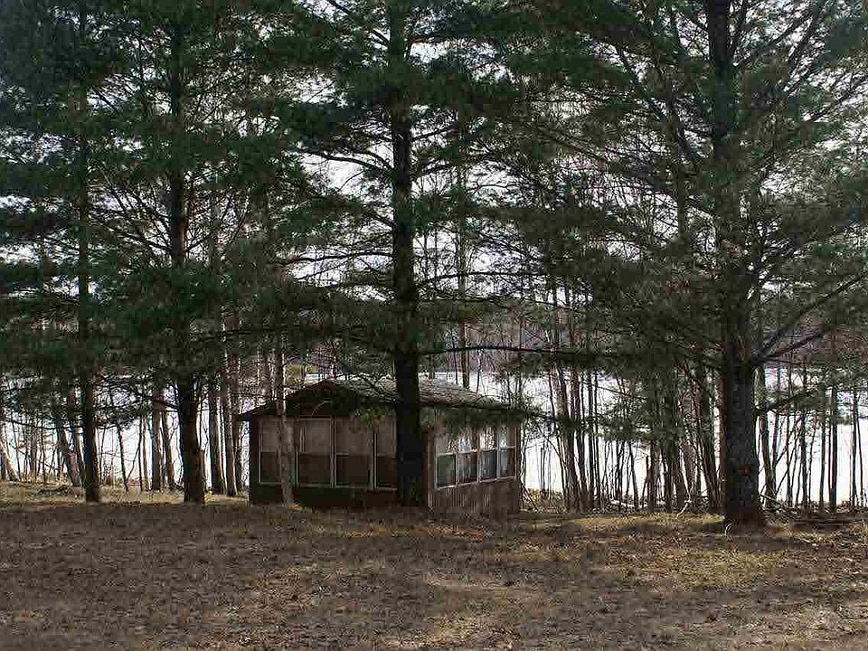 This Iron Lake lot is close to level with the water, has southern exposure for all day sunshine. The 3 season sunroom is a great place to hang out. 1 stall garage with covered porch could be converted to a small cabin. Beautifully treed lot with 423 ft of frontage. Priced far below assessed value.