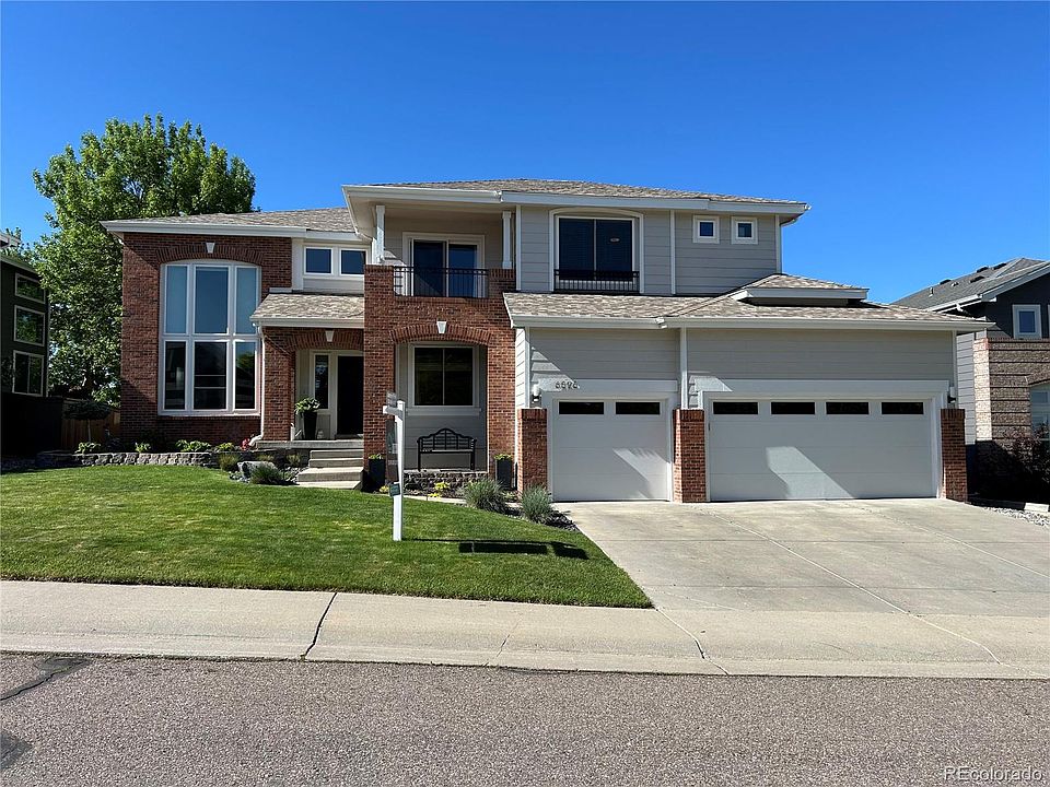 Welcome to this stunning, updated 2-story home nestled in the heart of Highlands Ranch, boasting an oversized 3-car garage and breathtaking mountain views! Step inside to discover a haven of modern elegance. The kitchen is a chef's dream, featuring granite countertops, white cabinets, and extended desk space, perfect for meal prep or homework sessions. Neutral paint tones throughout the home create a serene ambiance. The grand entryway sets the stage with a captivating spiral staircase, leading to the upper level. The main floor offers a pristine study with French doors, ideal for a home office or potential 4th bedroom conversion. The open floor plan seamlessly connects the spacious living room, adorned with a cozy gas fireplace, and the inviting dining area, perfect for hosting gatherings. Step outside onto the gorgeous deck, where you can soak in the panoramic mountain views or unwind in the newer patio (installed in 2020). Upstairs, the primary suite awaits with its own newer balcony decking, crafted with premium Deckorator material for added comfort and durability. The primary bathroom boasts double sinks, a soaking tub, shower, and an additional vanity area, while His and Her closets provide ample storage space. Two additional bedrooms offer generous closet space, with one granting access to the deck and featuring a walk-in closet. The roomy loft opens up to a beautiful balcony, perfect for relaxation or stargazing. The unfinished walkout basement presents endless possibilities, whether you envision a workshop, craft room, playroom, or teen retreat. This home offers the perfect blend of luxury, functionality, and potential. Don't miss the opportunity to make it yours!