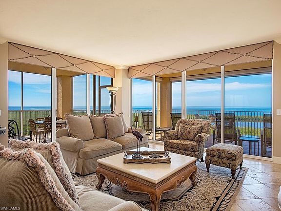 Light and bright corner end unit on coveted SW side with amazing wide gulf and sunset views. Fantastic space ready for your own special touches. Lovely marble floors in main living area of the home. There are 3 large suites plus an enclosed den/office. Two under building garage spaces. Wonderful 9 ft volume ceiling height. This much loved luxury high rise has 2 guest suites, tennis and a fitness center on site plus a gorgeous sunny pool and spa. Easy beach and tram access. There is guard gated security and 24 hour concierge in the lobby. Come home to Cap Ferrat and all the 5 star resort amenities of Pelican Bay with 2 beach front restaurants, tennis, a state of the art fitness/life center, gourmet dining and extraordinary shopping all close by at Waterside Shops and Mercado. This is the best of the Florida Lifestyle!
