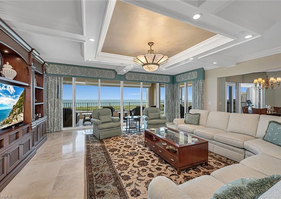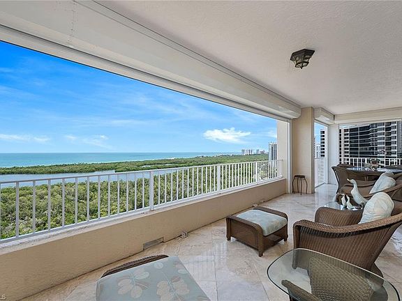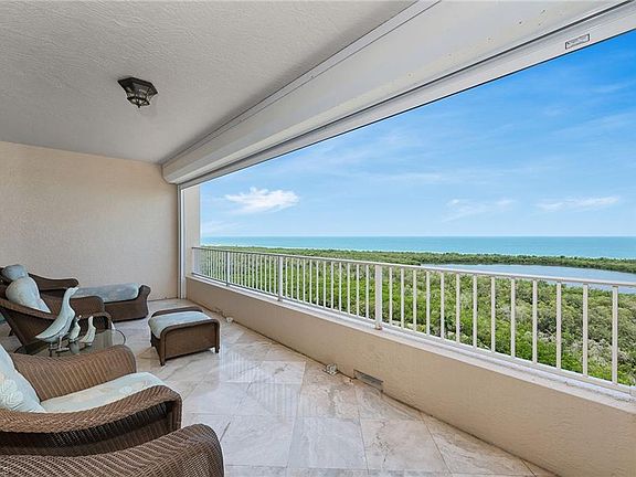 The one everyone is waiting for, over 4,500 square feet of indoor/outdoor living on the 17th floor in the coveted Cap Ferrat building. Gorgeous Gulf views, three balconies with 3,650 square feet under air, lives like a home, three bedrooms plus den and four baths. Entertain your guests in the large, open living room, kitchen, dining room and family room area with exquisite long-range views north and south of the Gulf of Mexico. The open kitchen features beautiful cabinetry, built-in appliances and granite countertops with a rare gas cooktop. Master suite with walk-in closet, walk-in shower and jetted tub overlooking the Gulf. Two car spaces and a community with 24-hour security and staffed gate and front desk, concierge service, fitness center, resort-style pool, spa, health club, saunas, steam rooms, massage rooms and so much more. Pelican Bay residents and guests have access to beach clubs with dining and community center with fitness center, spa and tennis courts.