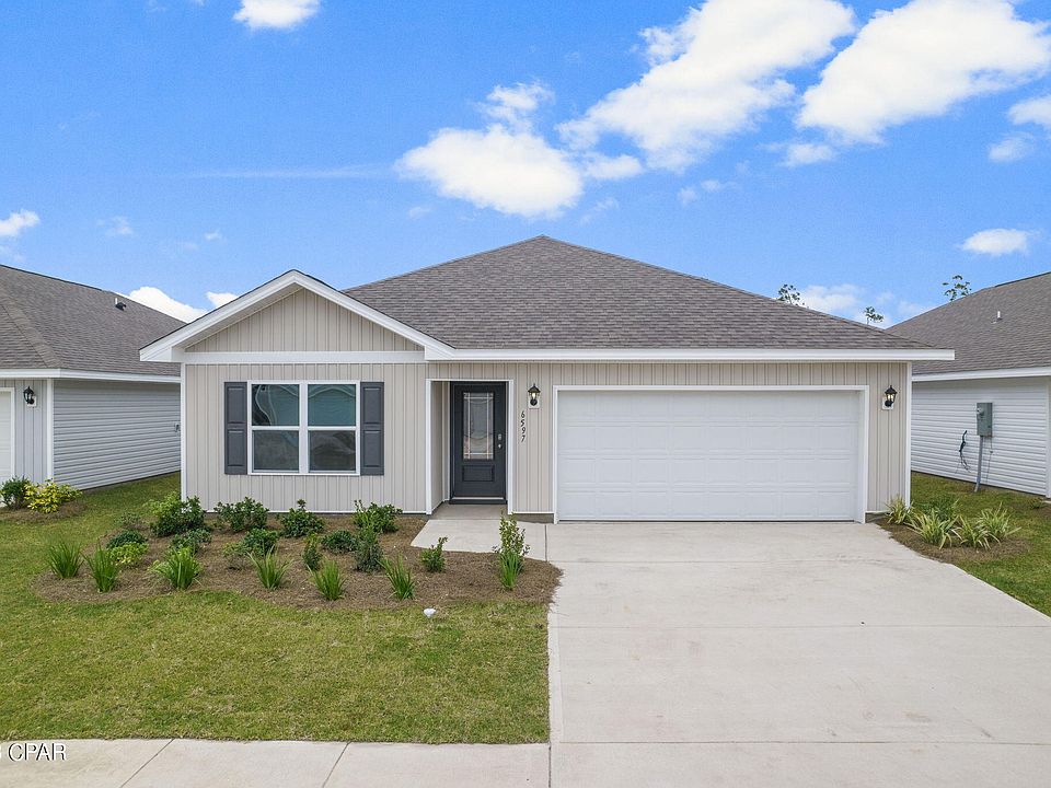 Upon entering the Aldridge floorplan you immediately notice the bright entry way afforded by the prairie door. This 3 bedroom 2 bath, 1272 square foot home is an open floorplan. The primary bedroom and bathroom are located off the entry at the front of the home. The primary bathroom has double sink vanity, large shower, and a huge closet. Proceed down the entry hallway passing the laundry area as you enter into the kitchen, dining, and family area. The kitchen offers an island with space for bar seating. On the opposite side of the home from the primary bedroom upfront, there are two spacious secondary bedrooms separated by another bathroom making this home a true split floorplan.