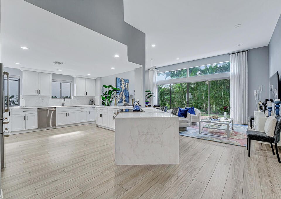 GORGEOUS remodeled home is better than buying new & is one of the prettiest & lowest prices in Villa Flora! This One story sprawling ranch is spectacular! OPEN CONCEPT is a breath of fresh air from the moment you enter the perfectly manicured double door entry, WOW! 2022 newer roof, newer A/c,newer tankless H/w Htr, Porcelain plank flooring throughout,natural stone quartzite counters & backsplash with waterfall edge, high end stainless appliances,remodeled porcelain bathrooms, this is one of the most pristine, immaculate, move in ready Boca homes to buy!The private backyard adorned by the perfect landscaping creates the perfect retreat for relaxation! A non mandatory spectacular country club is available if you wish to join,but is not mandatory.Best location in Boca Raton! LOVE IT!