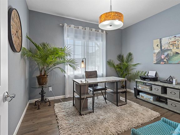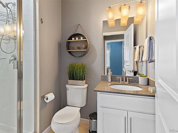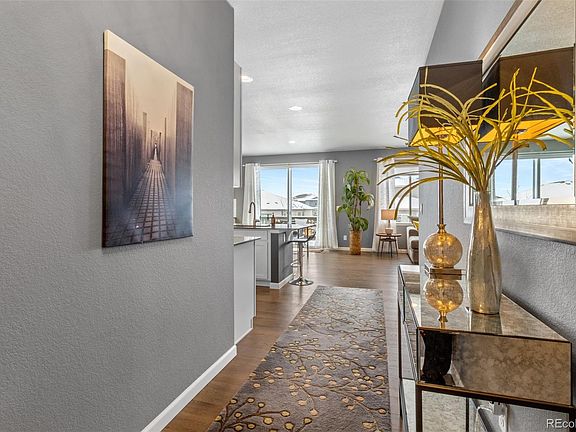 You will love this almost brand new home in Castle Pines. Just over 2100 square feet this 4 bed 3 bath home has custom touches throughout. Located in the Skyline neighborhood fronting to open space. Large flat backyard that was professionally landscaped with full fencing and gas fire pit. Kitchen has stainless appliances, gas range, under counter lighting and quartz countertops. Main floor bedroom with 3/4 bath. Laminate plank flooring throughout main with carpet upstairs. Master bath has privacy with a sliding barn door and custom tile work. Open basement ready for you to finish or perfect for storage. You are going to love this home.