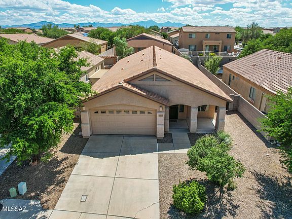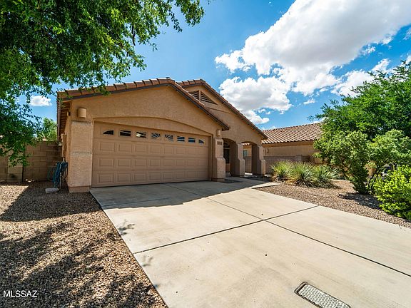 Beautiful 4BD/2BA contemporary home in gated community with exceptional amenities including pool & spa, workout facility, rec center, basketball court, playground & barbecue area. Two living areas are separated by the kitchen which has plenty of cabinets and counter space, breakfast bar, Corian counter tops and GE profile appliances, all appliances stay! Spacious primary bedroom with en suite; double vanity. High ceilings, roomy closets, carpet, enclosed backyard, covered patios, well taken care of and ready to move in. I-10 access, convenient to Raytheon, Davis Monthan AFB, UA Tech Park. Come and take a look today!