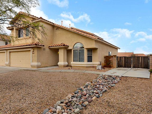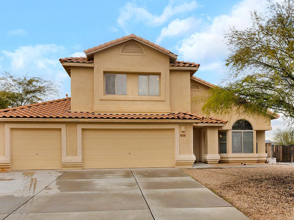 Stunning and spacious 5 bedroom/ 3 bath home with neutral ceramic tile flooring in lower level entry, livingroom, kitchen and walkways! Large rooms with ample storage closets! Open and bright with natural lighting. Inviting entry/ staircase! Warm and cozy natural gas fireplace in family room off kitchen! Large master suite with adjoining bath and soaking tub! Private and expansive rear yard (.32 acre lot), with double access gates and a huge pebble tec pool! Mountain views surround! Pride of ownership! Clean as a whistle! Don't miss out! Call it home today!