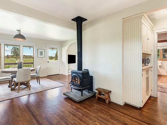 A Tumalo Oasis. Nestled in a grove of trees with mature landscaping and a huge 7 peak mountain views this small acreage will allow you to escape the bustle of town. Built in 1910 and updated by a master home builder every aspect of the property has been thought out. The home's interior feels European, fresh but established. The approx 1300 sqft RV shop has 200 amp power, propane heat, amazing natural light and pull through garage doors. Attached to the shop is a 1 bedroom ADU perfect for guests or a home office. There is also a separate 800 sqft 3 car garage with heated floors and tons of storage. The property hosts a pond with willows, multiple garden beds, and room for chickens or small animals. This is a special piece of land with thoughtful improvements.