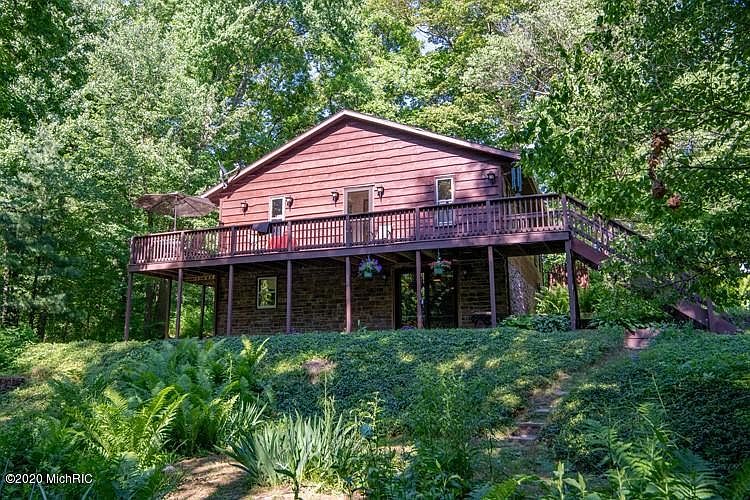 RETREAT-LIKE 3-4 Bedroom 2 Bath Home w/Full Walk-out Basement, 36x24 Pole Barn/3-Stall Garage, & Pond w/Water Feature on 3.49 Acres. Although there are steps up to the main level, you can drive/enter from Rainbow Rd. & walk in w/NO STEPS! Wildlife abounds (Deer, Turkey, Rabbits, Squirrels, Birds & even WHITE Female Peacocks!), 600' Hillside for Target Practice & Beautiful Trees/Wildflowers. Woodburning Stove on each level (Living Room stove w/flip-down door so can use as a Fireplace, Family Room stove can heat the entire house!!). All Appliances Stay, 2x6 Construction, 200 amp, & Seller is providing a Home Warranty!!! Sellers are sadly leaving this Meticulous, Well-maintained One-Owner Home to move closer to family, so their loss can be your gain!! Click on the BLUE MORE for more info.
