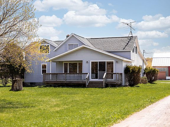 Enjoy views in every direction from this country location of 30 acres. Large home featuring 4 bedrooms, 2 bathrooms, open kitchen with formal dining leading out to your private patio. Spacious living room right off kitchen- perfect for entertaining. Bonus (family) room, main floor master suite, and tons of natural light throughout the home. House has 2.5 attached car garage, several outbuildings/barns- large barn heated by outdoor wood boiler that is located in wood shed (also could heat home), some buildings with private lofts, and one with the potential of a secondary living quarters. With a few cosmetic updates this property offers endless ideas from your private horse oasis, to a possible wedding venue, to a hobby farm!