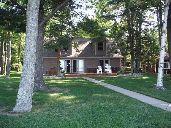 Tucked away like a hidden treasure, this gorgeous lakefront home is the perfect waterfront dream home. Follow the tree lined drive to this up North paradise, where you will find a meticulously maintained home with rustic fieldstone and maintenance free vinyl siding. Home is surrounded by colorful landscaping, plush green lawn, a 12 x 16 Garden shed and a second 22 x 26 garage to store all your watercraft, snowmobiles, yard tools and so much more! Parking will never be a problem with this exceptionally deep lot, offering an abundance of room for visiting guests or extended family. This charming lakefront features 4 bedrooms, (2 main floor master suites) and 2 additional upstairs bedrooms that are incredibly spacious and bright, 3 bathrooms with plumbing prepped for a 4th bathroom, studio/office or craft area upstairs and an open living room/kitchen overlooking the beautiful waters of the North Shore. Men will enjoy the heated garage with a sink station for cleaning the catch of the day! In floor radiant heat keeps the floors nice and warm while providing even heat throughout. Central air conditioning for those warmer days and baseboard heat upstairs. Custom built in 2005 with close attention to every detail. Enjoy over 76 ft. of waterfront with sandy bottom, spacious yard, and a large 16 x 40 deck overlooking the water, ideal for entertaining family and friends. Too many amenities to list, see the attached disclosure for a full list of wonderful upgrades to this home. Call for your private home tour today!!