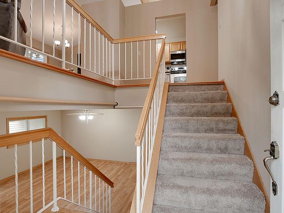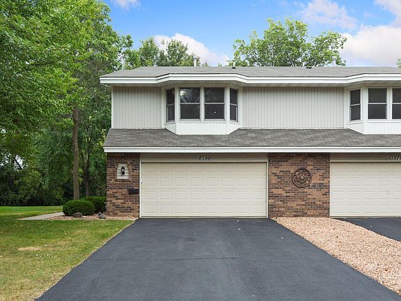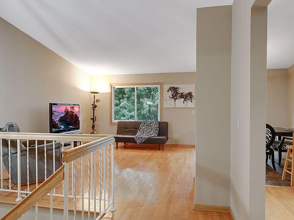 Excellent split-level townhome on ideal treed lot that backs to greenspace and Bailey Nurseries, with views of gorgeous sunsets and lots of wildlife! Vaulted living area features hardwood floors, neutral paint and updated lighting through family room and updated kitchen with granite counters and stainless steel appliances, plus informal dining lends patio door access to balcony Trex deck overlooking greenspace. Full bath services two bedrooms on the main level including the master suite with laminate flooring, large bay window, vanity and walk-in closet. And walkout lower level offers a large recreation room with wood-burning fireplace and a ¾ bath with new shower. Other improvements include new window and patio door in LL, new furnace and A/C, flooring in dining, master, rec room and baths, new carpet, bathroom faucets, and new landscaping. Located in a nice neighborhood, close to trails, Carver Lake and shopping, with easy access to Bailey Rd and I-494.