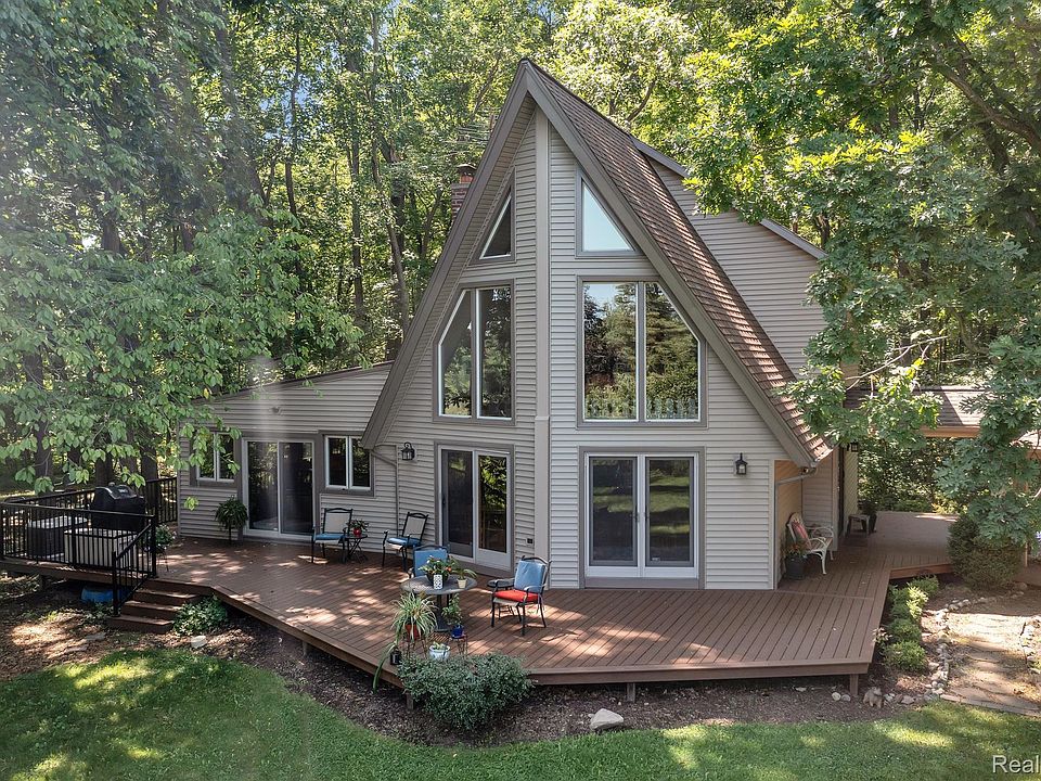 Magical stunning chalet tucked beautifully on 5+ acres. Surrounded by woods with open meadow towards street. This 3 bedroom, 2 bath, home features: new windows, siding, roof, updated furnace, hardwood floors throughout, two-story great room with towering windows, updated kitchen with stainless steel appliances, silestone counters, new backsplash & new cabinets. Great Room has Fieldstone accent wall ready for your choice of wood burner. Warm family room with gas burning stove, tongue and groove wood plank from floor to ceiling. Perfect office or workout room adjacent to family room & large main floor bathroom is ideally placed. 2 bedrooms are perfectly appointed. The upper owner suite features, large bedroom, sitting room with a balcony overlooking great room and full bathroom. Outside you will find newer trex decking surrounding the home, covered walkway to huge 2 1/2 car garage. 2 acres of hardwoods and Pines, 3 acres of treelined meadow & lawn. New septic tank, long well-maintained road. Country living with quick access to expressways, shopping, Brighton, Ann Arbor, and more… truly one of a kind!