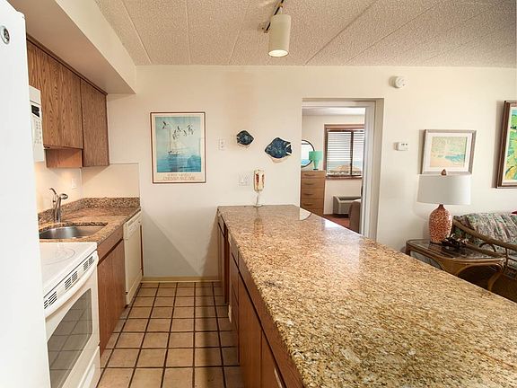 PREMIUM THIRD FLOOR SOUTH SIDE UNIT AT THE WHITEBRIER CONDIMINIUMS. Enjoy breathtaking ocean views to the east and south as well as big sky western sunset views from the fabulous, oversized wraparound sundeck. Enjoy fabulous views from each room in the unit. The comfortable living area has an open floor plan with updated kitchen, custom oak cabinets, wonderful entertaining peninsula bar and stone countertops. The cozy living room has a large sofa upholstered with Italian designer fabric and dining area with one of a kind, cut and leaded glass custom lamp and beautiful custom screen door with transom. The two bedrooms are completely private from one another. Master bedroom has an ensuite bath while the second bedroom has an adjacent hall bath. The fabulous wraparound deck has 2 motorized awnings as well as a beautiful set of solid teak deck furniture. The well run association has on site management. Common area features include a fabulous new oceanfront swimming pool & spa, gorgeous club room, elevator, ample off-street parking, laundry facilities on each floor and a large storage locker for each unit owner. The unit has one of the best locations in the building, close proximity to town and a wonderful protected beach.
