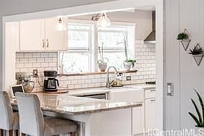 PERFECT North Shore location, right in the heart of famous Haleiwa! Walk out your gated driveway to all the local shops and restaurants. Stroll to the beach to swim and surf whenever you want. This beachy bungalow has the charm of old Hawaii mixed with all modern amenities of a new home. Fully upgraded and renovated kitchen. Spacious screened in lanai provides plenty of outdoor living space. Main bathroom boosts a jacuzzi tub and separate shower. Primary bedroom offers en-suite bathroom with private outdoor shower. Gas stove and tankless water heater run off (2) 100lb propane tanks. Fruit Trees Limes, mango, star fruit, papaya, and ulu trees. There are three separate homes on the shared fenced-in property; neighbors exemplify the Aloha Spirit and look out for one another. Pet Friendly! Other two homes on shared yard have dogs and cats; property manager must meet your pet prior to signing rental agreement.